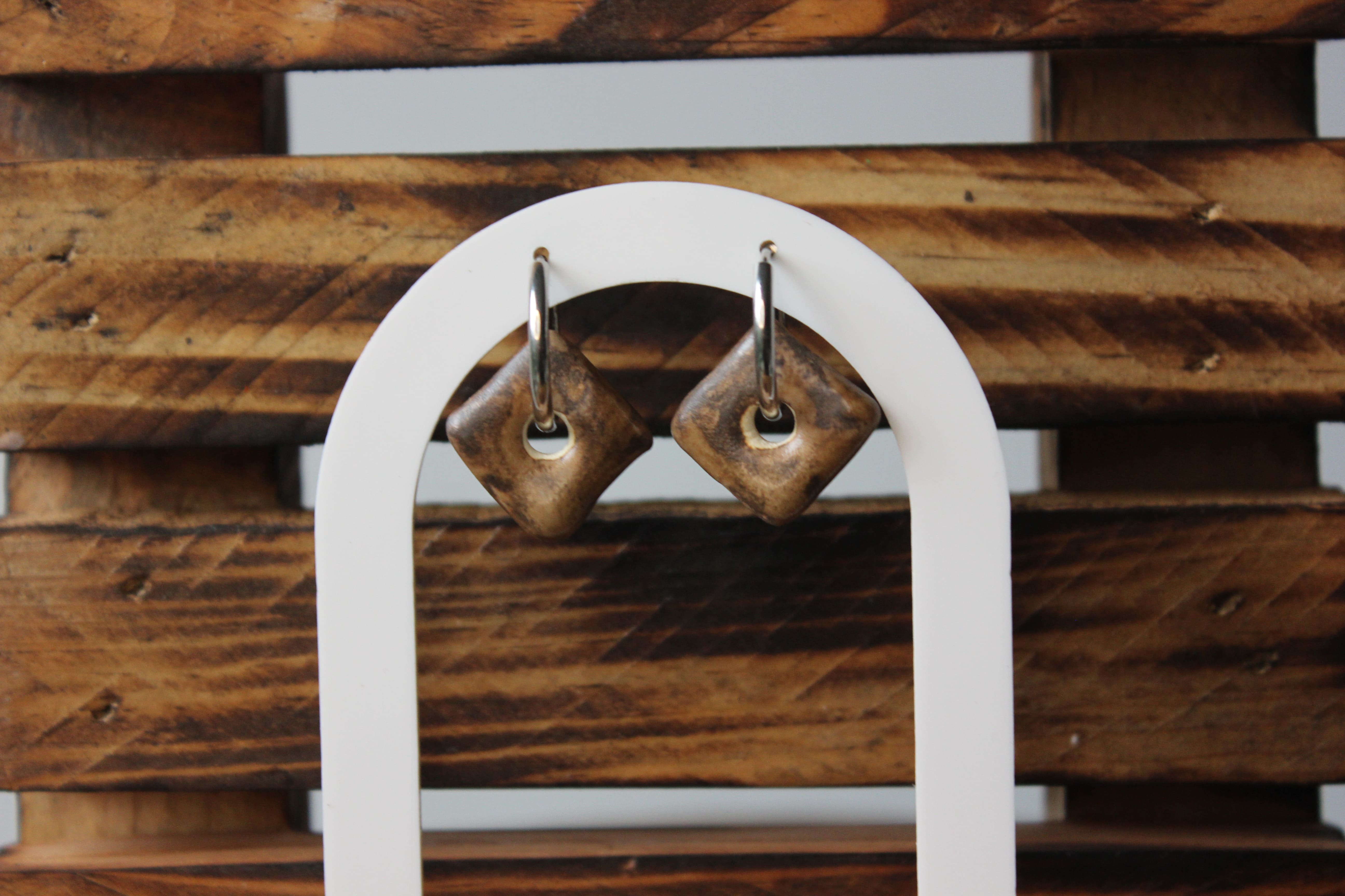 INCLUYE: Par de pendientes con aro de 14 mm + par de piezas de cerámica artesanal 100% hechas a mano.